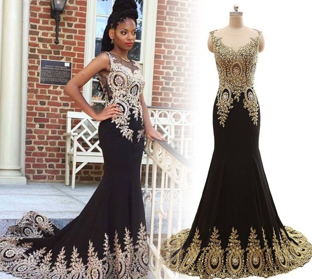 Black evening gown with gold accessories for women 2017 – 10 Most Inspiring Evening dresses Ideas